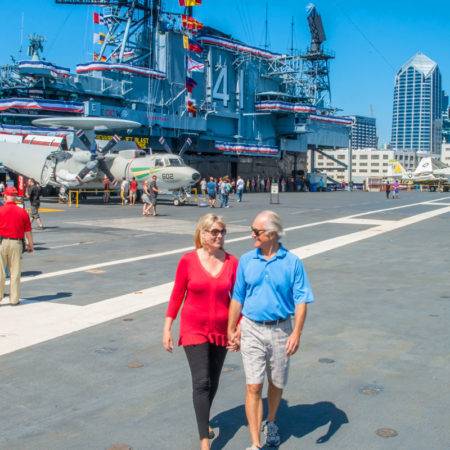 From there, we’ll make our way to the Embarcadero’s Bayfront views. You’ll see the Historic County Administration Building, the Maritime Museum’s Star of India, the USS Midway Museum, Seaport Village, the Headquarters, and also the Navy’s aircraft carriers across the bay.