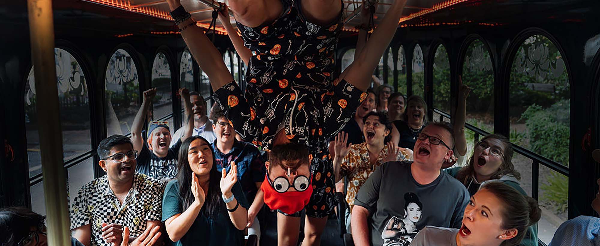 Adults only (16+). Features spontaneous humor, unpredictable antics, and an over-the-top good time.